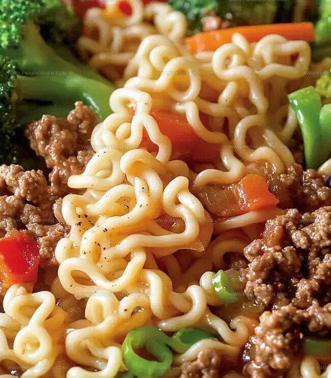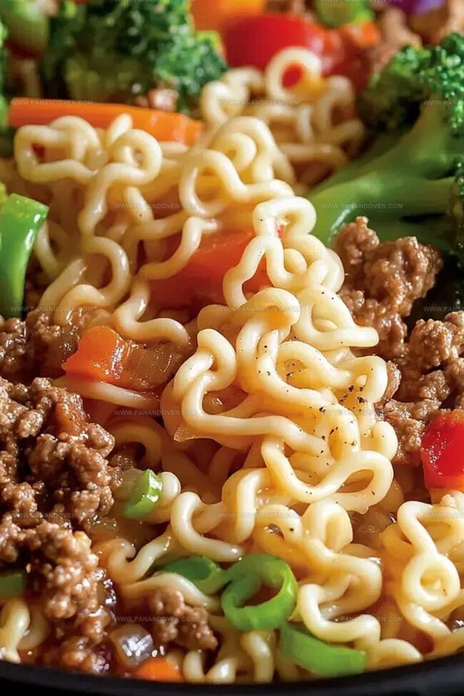 - Return cooked vegetables to the skillet with beef. Add drained ramen noodles and pour prepared sauce over the entire mixture. Gently toss ingredients to ensure even coating and thorough integration of flavors.