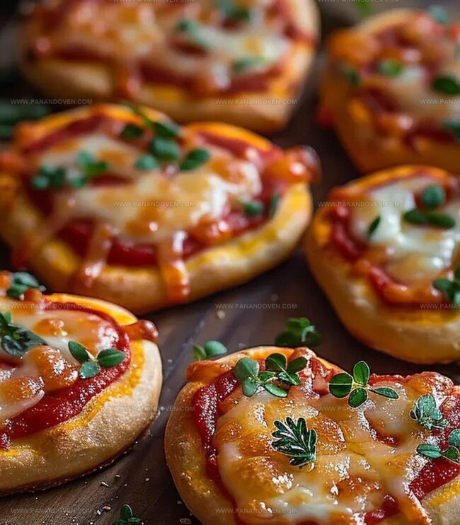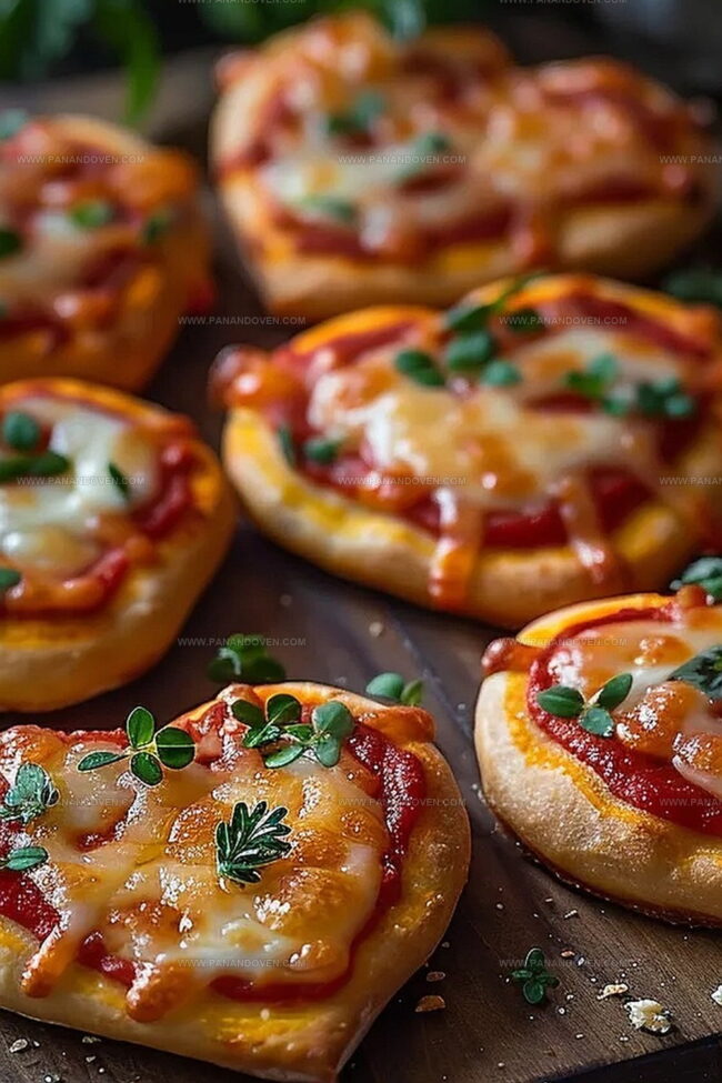- Bake the mini pizzas in the preheated oven for 8-10 minutes, monitoring until the cheese melts completely and the edges turn golden brown and crispy.