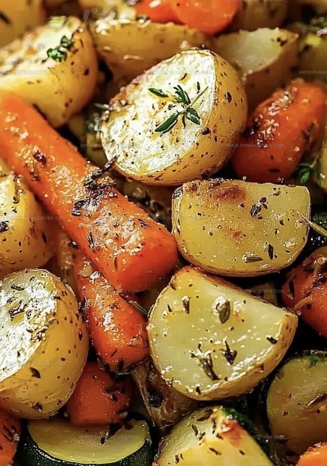 - Transfer the aromatic, herb-infused roasted vegetables to a serving dish, ready to complement your main course with their robust flavors.