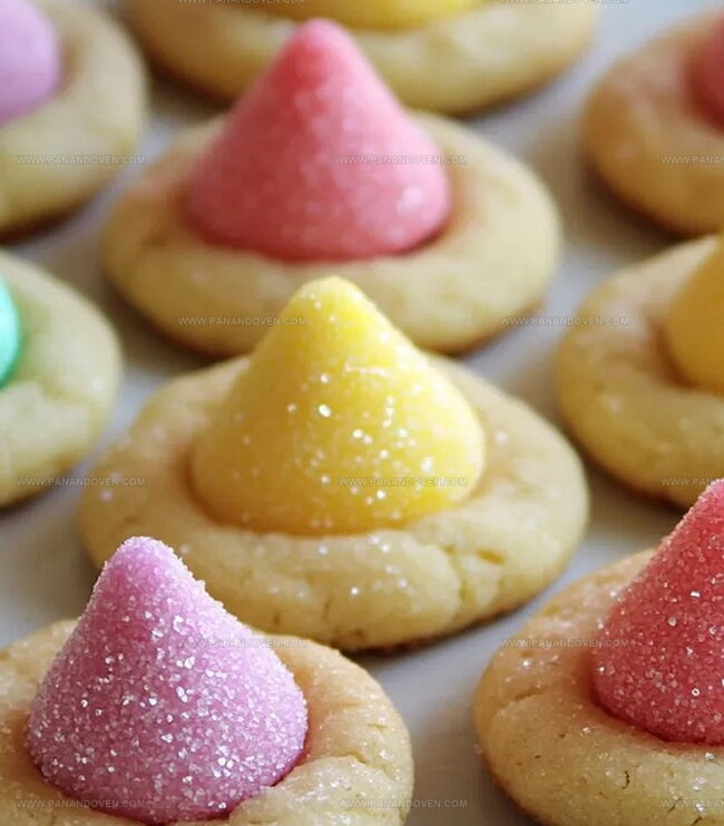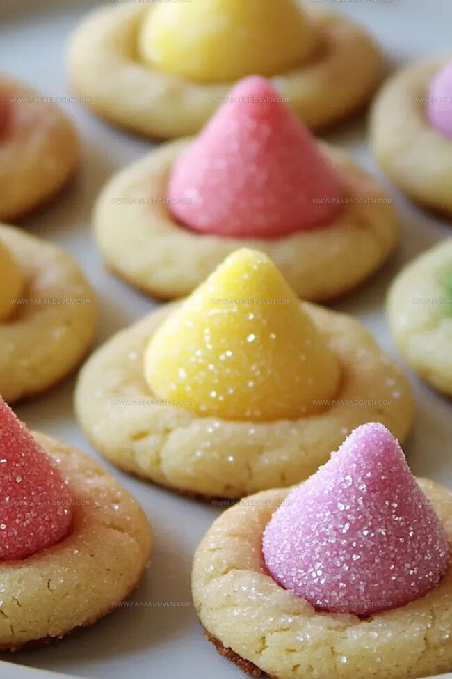 The combination of softened butter, sugar, egg, vanilla, flour, and baking soda creates a tender, sweet base. Rolling the cookies in colorful sanding sugar adds a sparkling, crunchy texture, while the Hershey’s Kiss provides a rich chocolate finish.