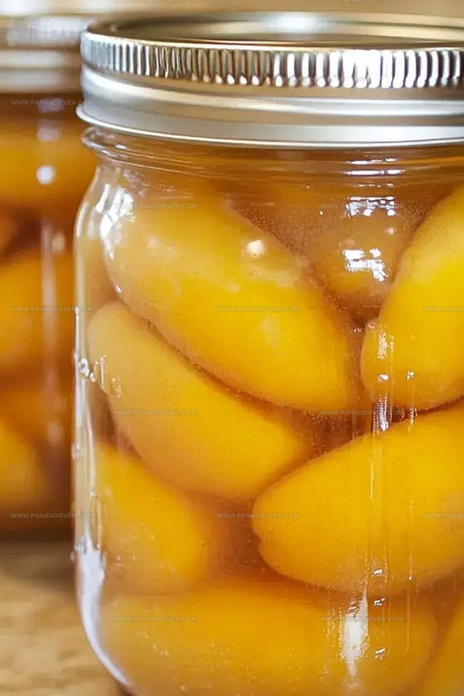 - Carefully slice peeled peaches into uniform sections, arranging neatly within sterilized jars, then delicately pour prepared sugar syrup, maintaining precise half-inch space from container rim.
