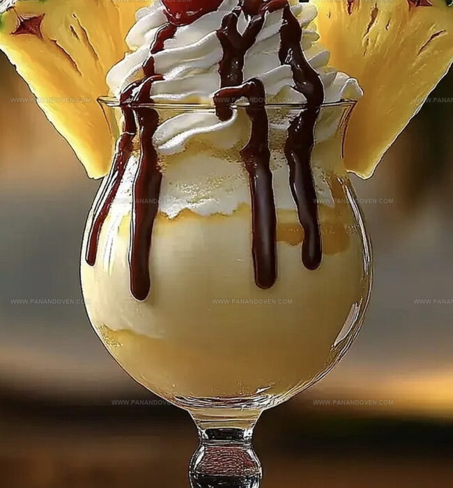 Tropical pina colada ice cream sundae brings Caribbean flair to classic dessert. Creamy coconut and pineapple layers create refreshing summer treat you’ll crave after each delightful spoonful.