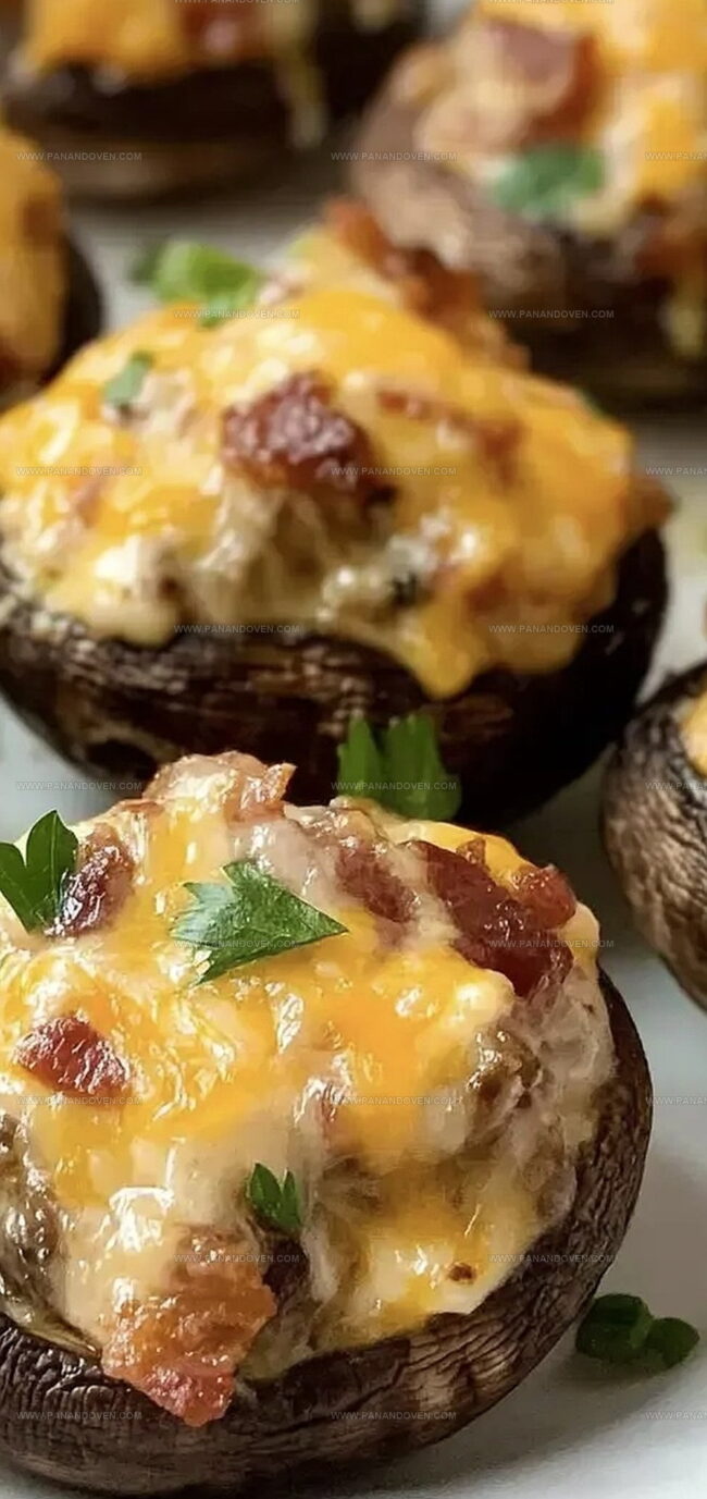 - Generously fill each mushroom cap with the creamy cheese mixture, ensuring even distribution.