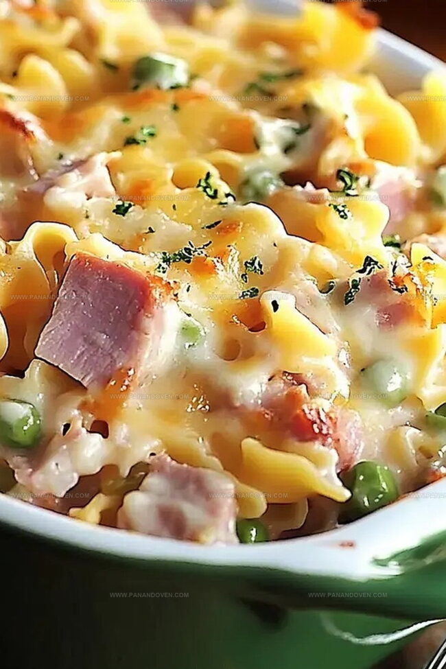 Hearty ham chunks mingle with tender egg noodles in a creamy sauce that promises warmth and satisfaction.