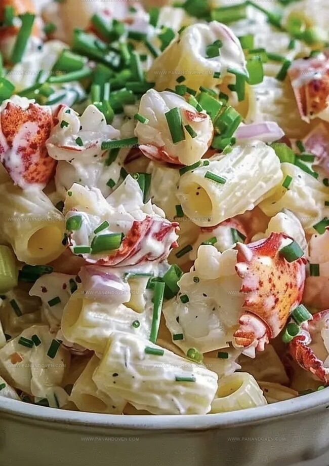- Gently fold pasta, lobster chunks, and remaining ingredients in a spacious mixing bowl, ensuring delicate components are distributed uniformly.