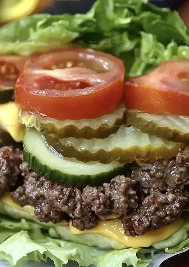 - Place cooked burger patty in the center of each lettuce leaf. Layer complementary toppings strategically – juicy tomato slices, crisp onion rings, tangy pickles, melted cheese, and creamy avocado slices.
