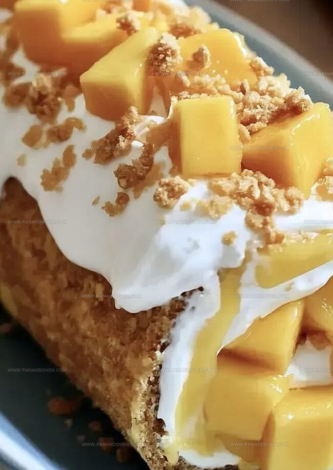 Creamy mangoes blend perfectly with soft graham crackers, creating a heavenly treat.