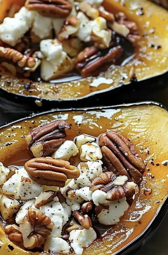 - Scatter crumbled goat cheese and roughly chopped pecans over the syrup-coated squash, ensuring even distribution.