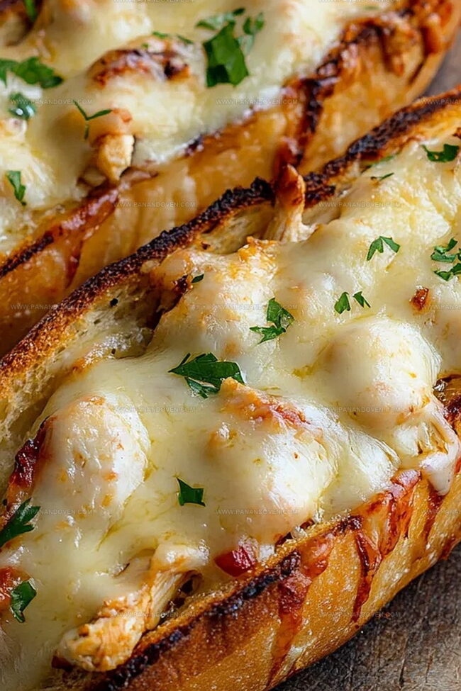 Garlic bread is recommended, but you can also use sourdough, ciabatta, or brioche for delicious results. The key is using a sturdy bread that can hold the melty cheese and chicken filling.