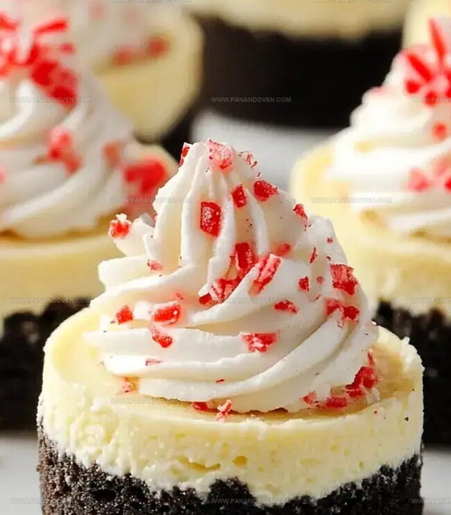 Creamy, decadent mini peppermint cheesecakes dance with festive holiday cheer, promising a delightful twist on classic dessert recipes.