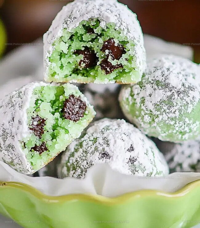 Mint chocolate chip snowball cookies offer a delightful winter-inspired treat that combines classic cookie comfort with festive flair. Powdered sugar coats these buttery morsels, while mint chocolate chips provide a cool, sweet surprise that will enchant dessert enthusiasts.
