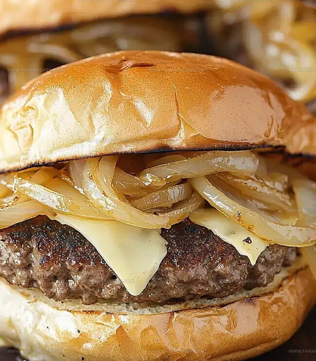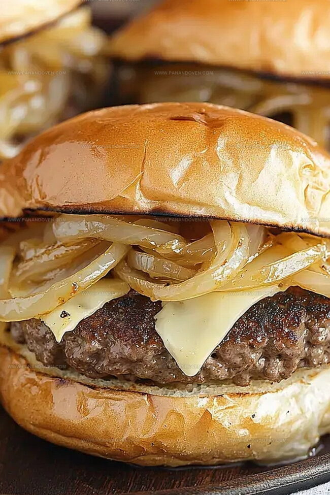- Transfer burgers to serving plates, ensuring each receives equal portions of melted cheese and caramelized onions.