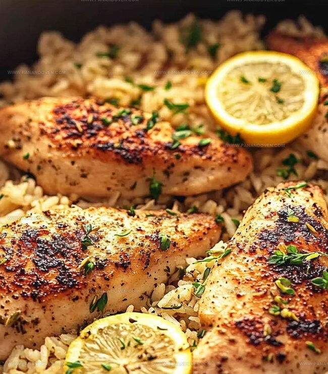 The combination of herb-infused chicken and lemony rice creates a comforting meal perfect for any weeknight dinner.
