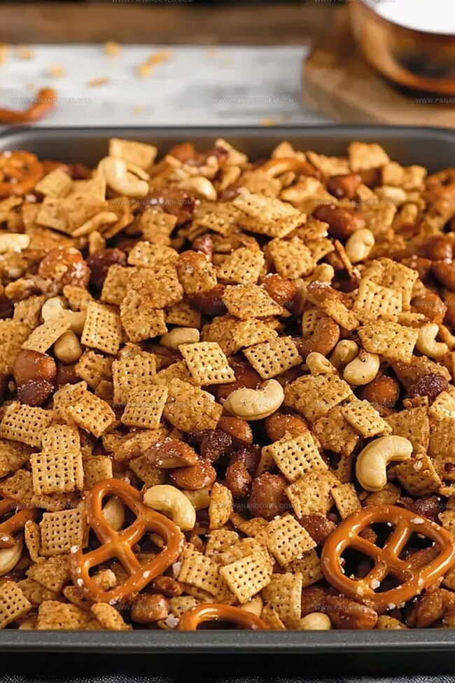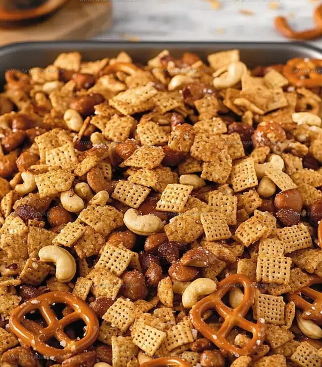Bold seasonings dance across crisp cereals, pretzels, and nuts, creating an addictive blend that disappears faster than you can make it.