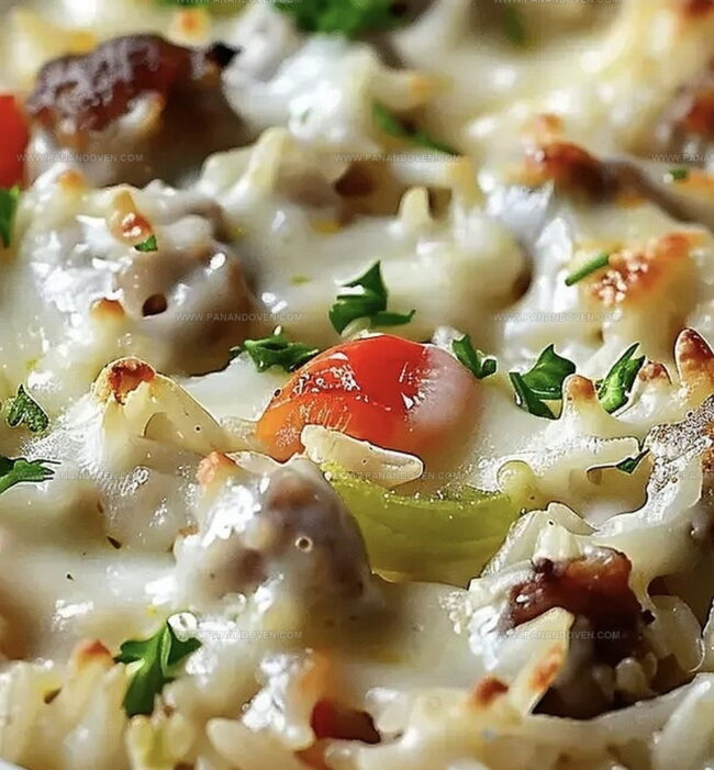 Philly cheesesteak alfredo rice casserole blends classic sandwich flavors with comforting pasta-style textures. Melted cheese, tender beef, and creamy sauce create a satisfying meal that connects culinary traditions with homestyle cooking.