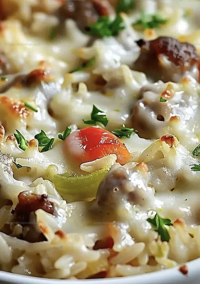 Dive into this incredible Philly Cheesesteak Alfredo Rice Casserole that combines all your favorite flavors!