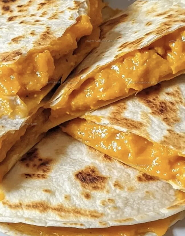 Crisp tortillas cradle soft, seasoned pumpkin chunks that melt into gooey cheese.