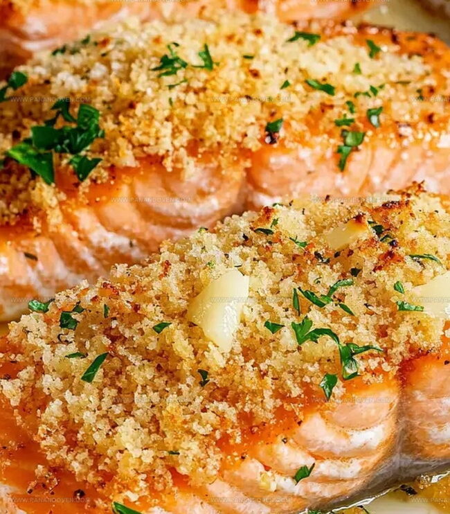- Gently distribute the panko-Parmesan mixture over the fish, pressing lightly to ensure it adheres to the surface.