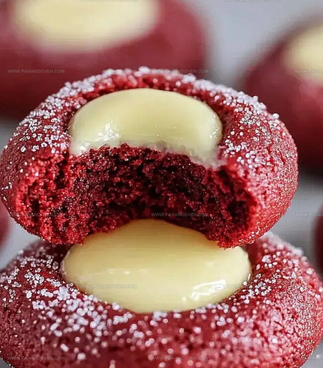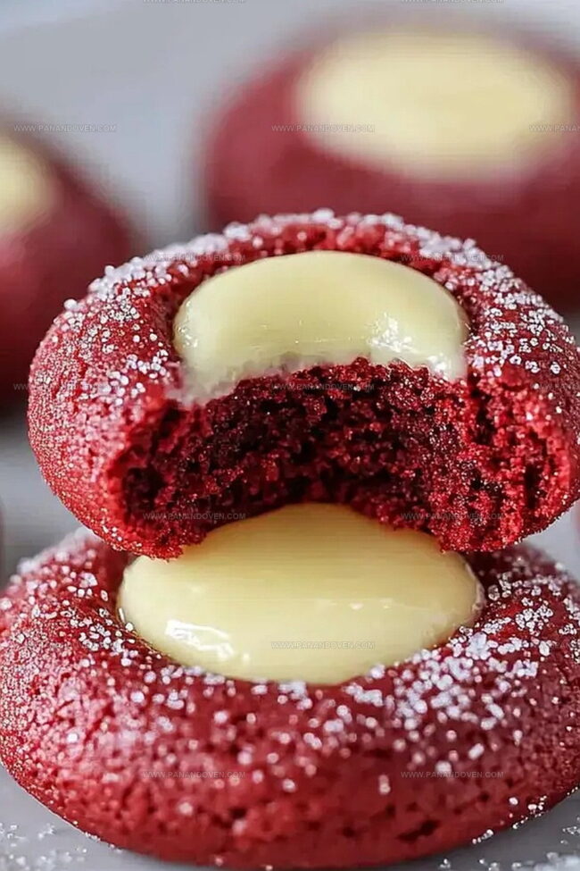 Red velvet thumbprint cookies with cream cheese provide a delightful twist on classic desserts. Rich cocoa-infused cookies cradle silky cream cheese filling, offering sweet indulgence that satisfies chocolate and cookie enthusiasts.