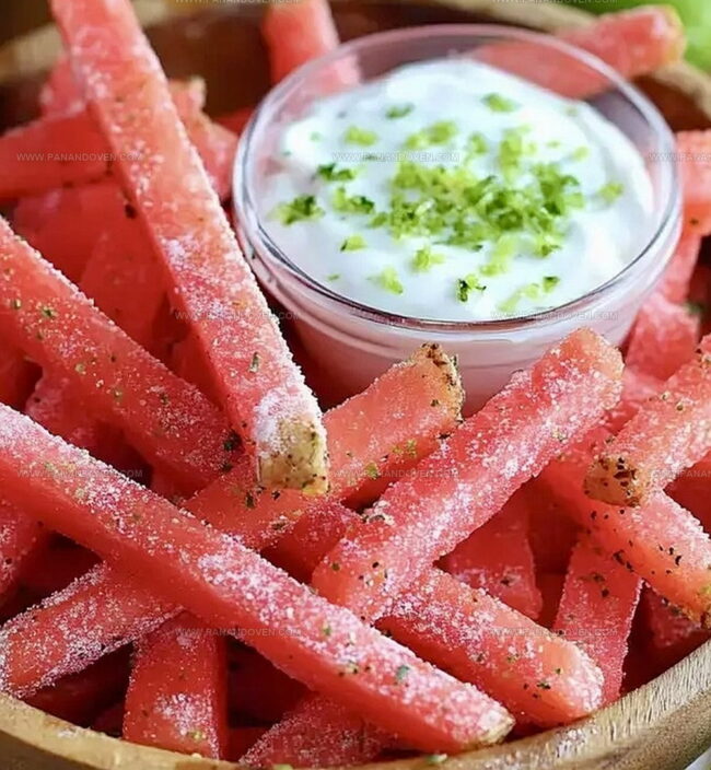 - Serve the watermelon fries immediately alongside the prepared coconut lime dip, offering a refreshing and unexpected summer snack that delights the palate.