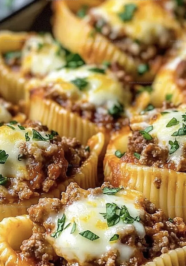 - Delicately nestle the robust beef and cheese mixture into each waiting pasta shell, arranging them snugly within a baking vessel.