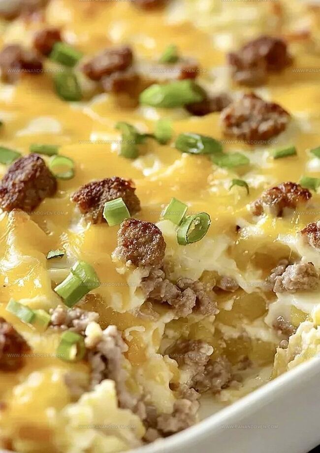 Hearty sausage hashbrown casserole delivers comfort on cold mornings with layers of savory flavor. Crispy edges, melted cheese, and breakfast sausage create a satisfying meal you’ll crave again and again.