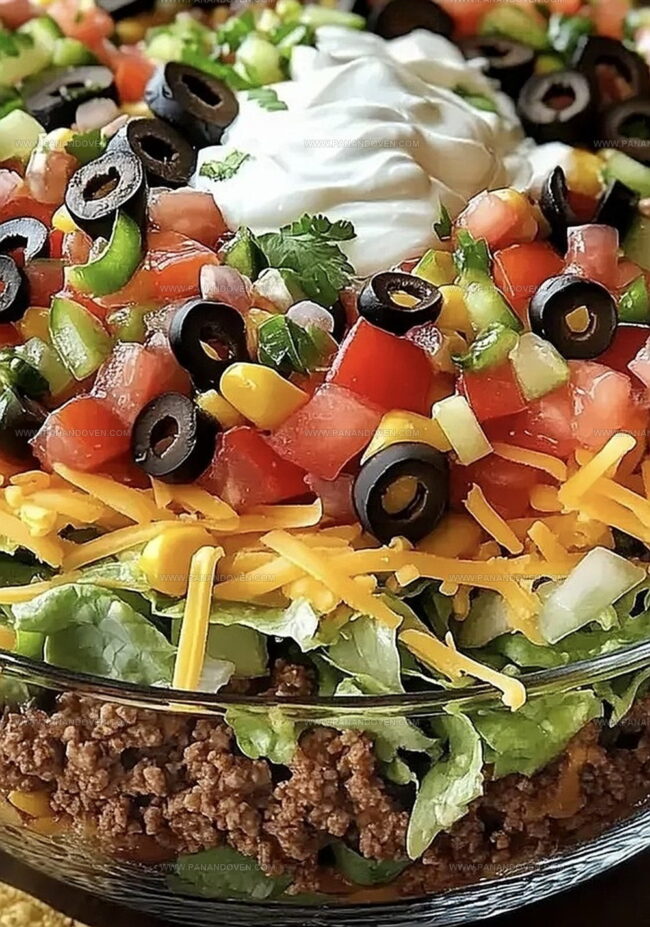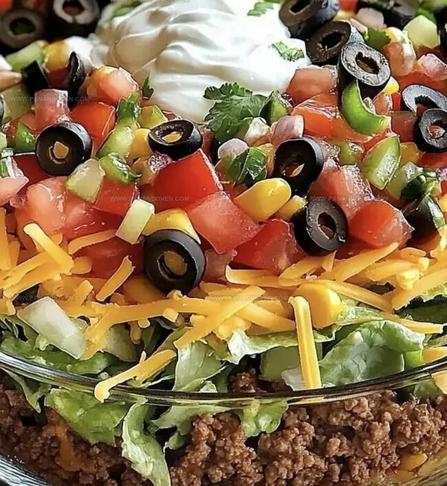Hearty seven-layer taco salad combines Mexican-inspired layers of fresh ingredients for a crowd-pleasing meal. Crisp lettuce, seasoned ground beef, and zesty toppings create a delicious dish perfect for gatherings or quick dinners you’ll crave.