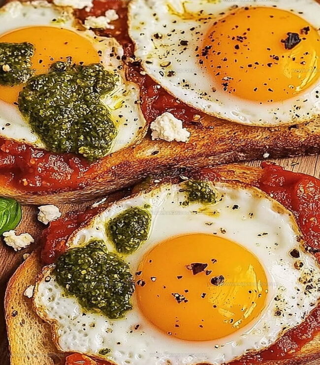 Spicy Mediterranean Shakshouka Toast brings North African zest to breakfast with perfectly fried eggs nestled on crispy bread. Creamy feta, tangy tomato sauce, and herbs create a morning feast you’ll savor with each delicious bite.