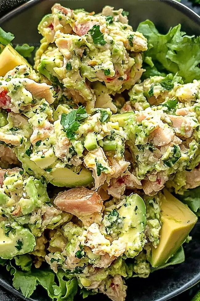 Ripe avocados blend seamlessly with tender canned tuna, creating a delightful combination of flavors.