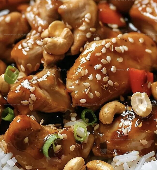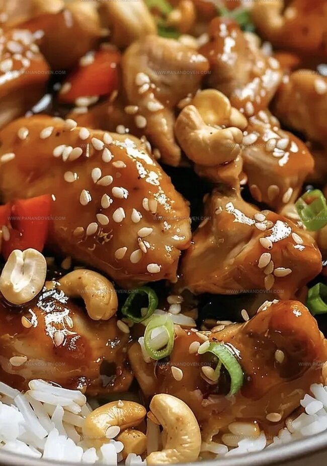 - Once cooking is complete, gently stir the chicken to coat with sauce. Serve over steamed rice, garnishing with reserved cashews for a delightful textural contrast.