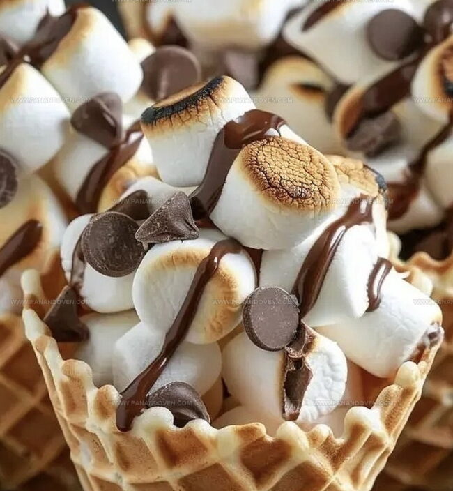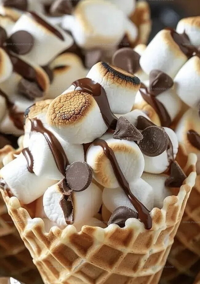 Crisp waffle cones loaded with gooey chocolate and soft marshmallows create a nostalgic camping experience everyone will love.