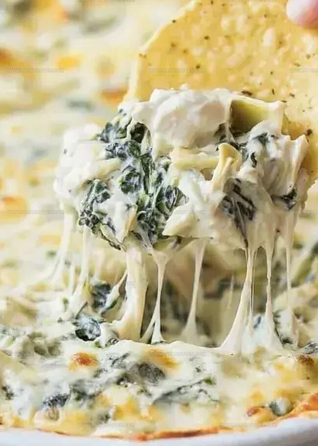 - Squeeze spinach and artichokes with paper towels or clean kitchen towel to remove maximum moisture, which keeps the dip rich and concentrated.