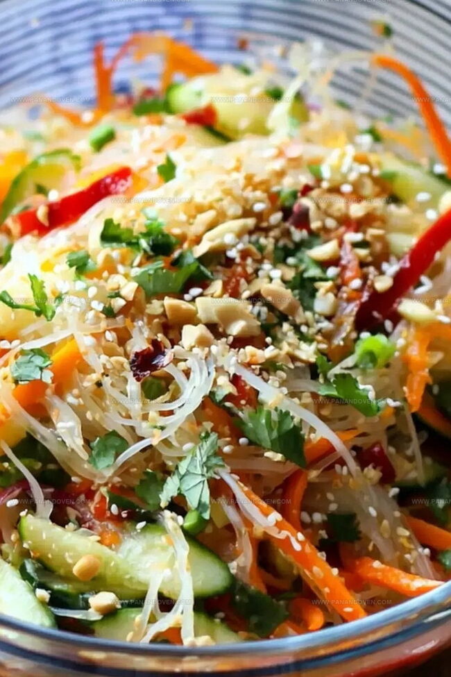 - Select a spacious mixing bowl and gently combine cooled noodles with thinly sliced cabbage, julienned cucumber, shredded carrot, diced bell pepper, crisp bean sprouts, chopped fresh cilantro, and torn mint leaves.