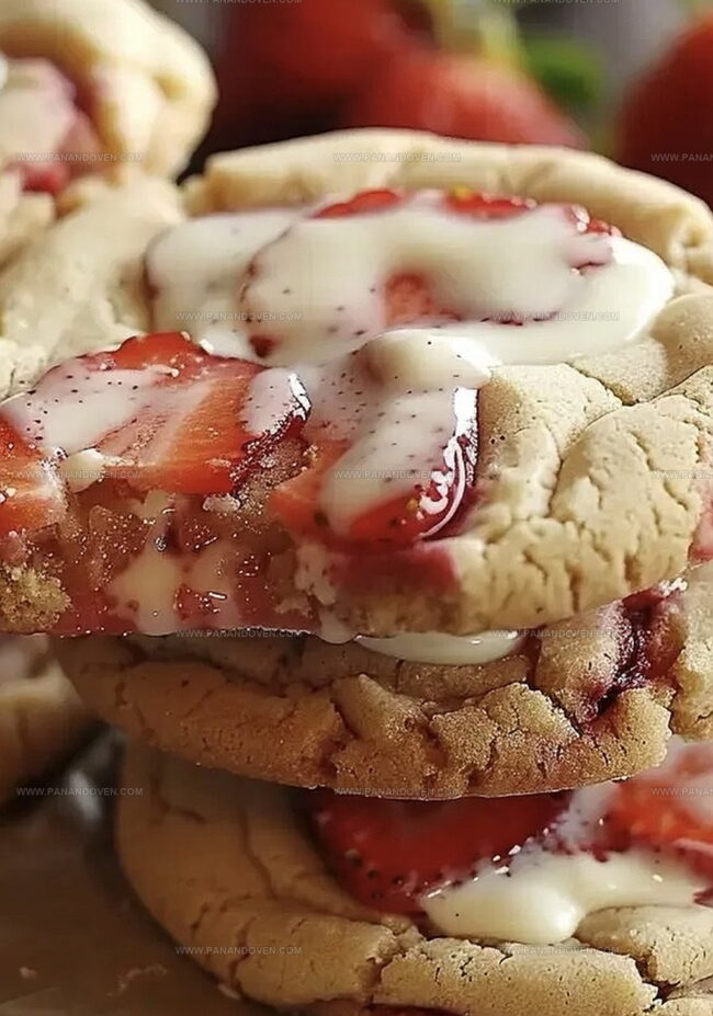 - Serve these decadent cookies showcasing a harmonious blend of tangy cheesecake and sweet strawberry elements within a warmly spiced cookie foundation.