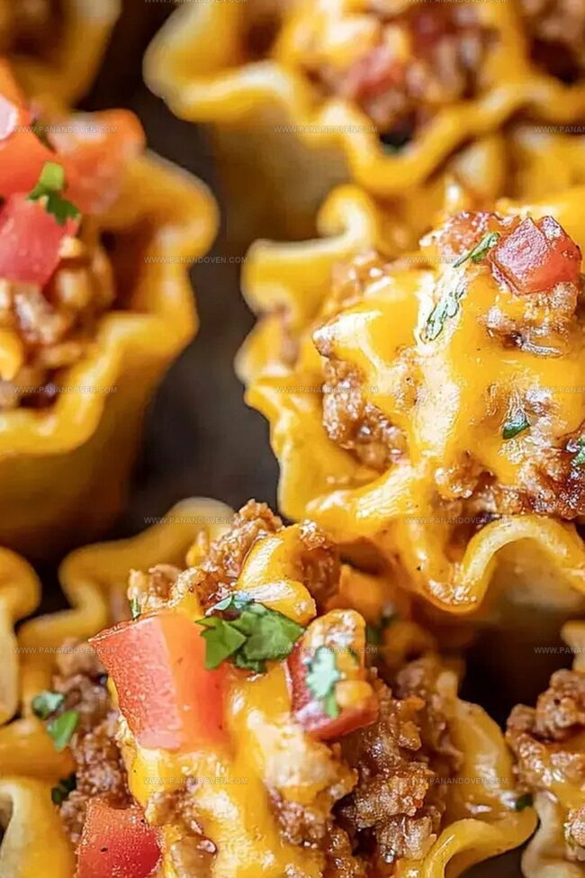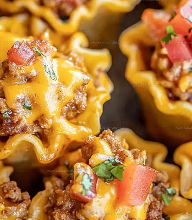 Creamy ranch-seasoned taco bites combine zesty Mexican flavors with rich, tangy dressing. Crispy tortilla cups cradle spicy ground beef and cool ranch, offering a perfect party appetizer for hungry guests.