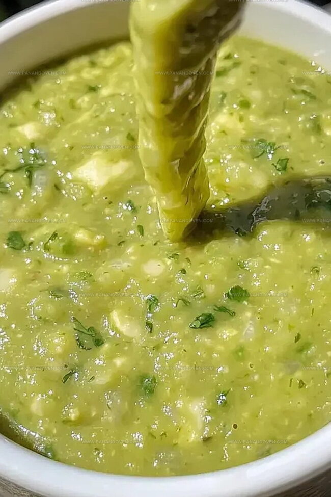 Zesty green salsa bursts with vibrant tomatillo avocado salsa flavors that dance across your palate.