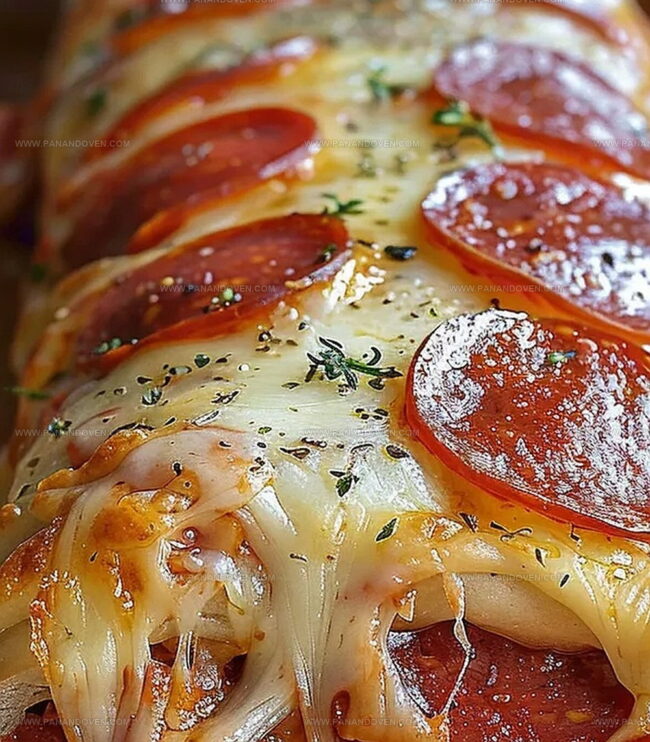 Stromboli lovers will adore this cheesy pepperoni stromboli, packed with classic Italian-American flavors. Melted mozzarella and spicy pepperoni create a delicious rolled sandwich you’ll crave again and again.