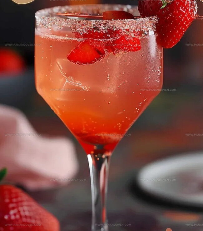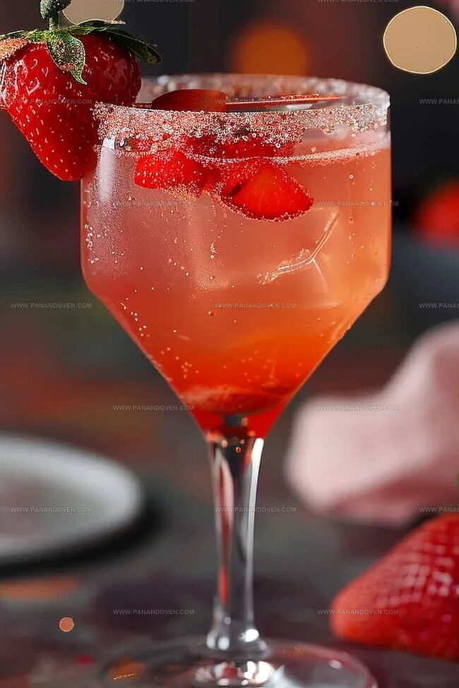 - Elegantly garnish the rim with a fresh, ripe strawberry slice, adding a romantic and visually appealing final touch to the Valentine’s Love Potion Mocktail.