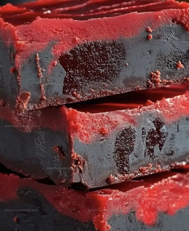 Spooky Vampire Fudge blends dark chocolate’s sinister charm with crimson raspberry swirls. Blood-red raspberry sauce creates haunting patterns across rich chocolate layers, offering ghoulish delight for Halloween dessert enthusiasts.