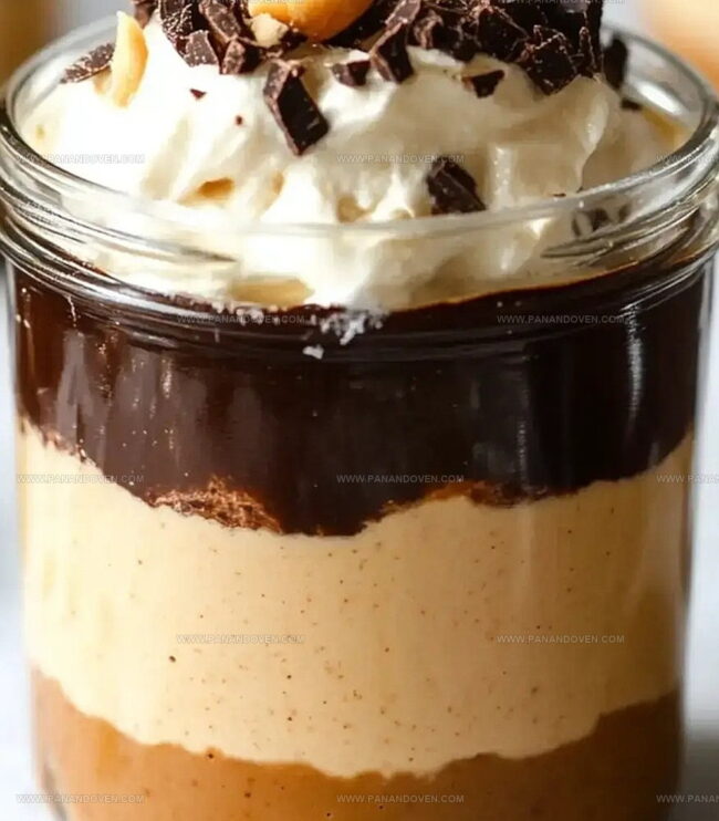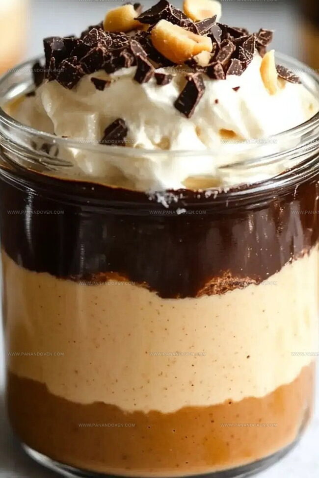 - Carefully layer the peanut butter mousse into individual serving glasses or jars, creating elegant visual layers.