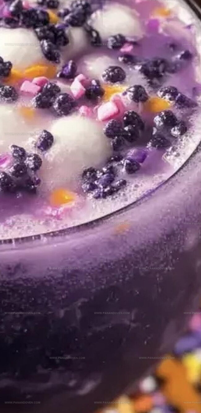 Deep purple and green hues mix together, transforming an ordinary drink into a supernatural spectacle.